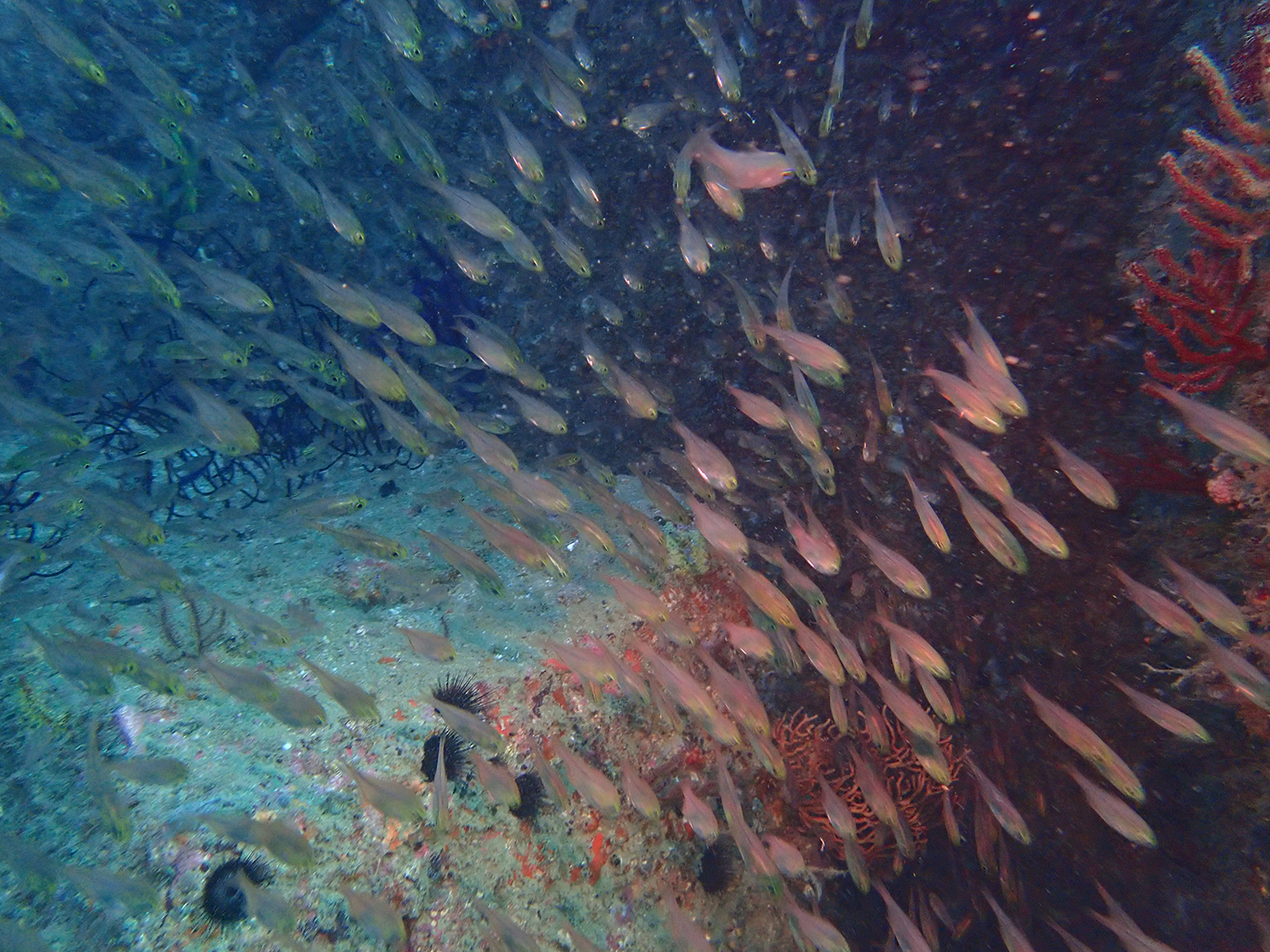 ミノカサゴと2ショットを撮ったり、カマスを眺めたり。
