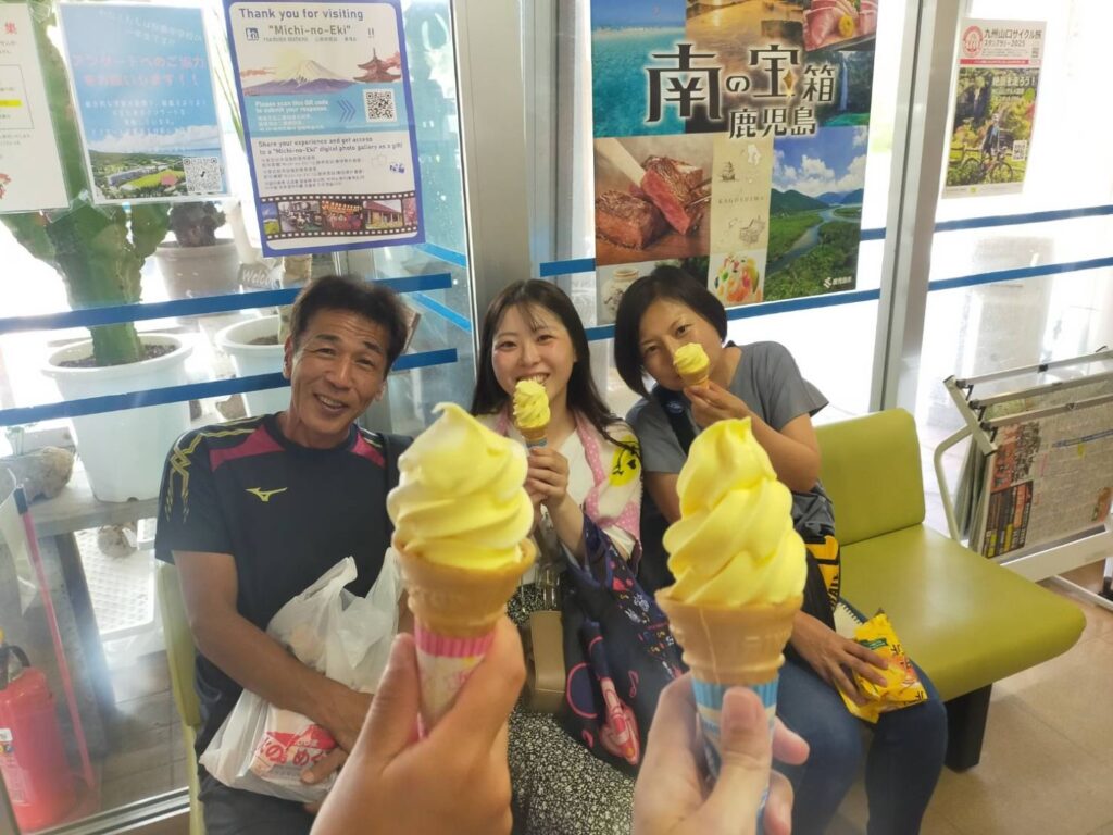 最後のおやつは桜島こみかんソフト!