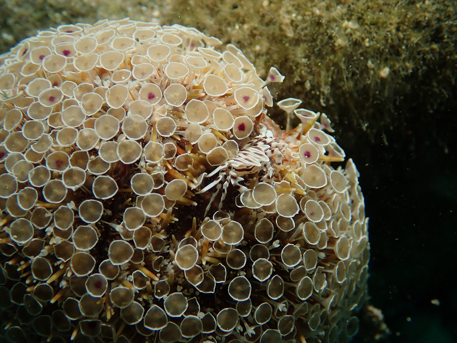 この岩なんて、ガンガゼを身にまとい、モノトーンで決めていました(笑)