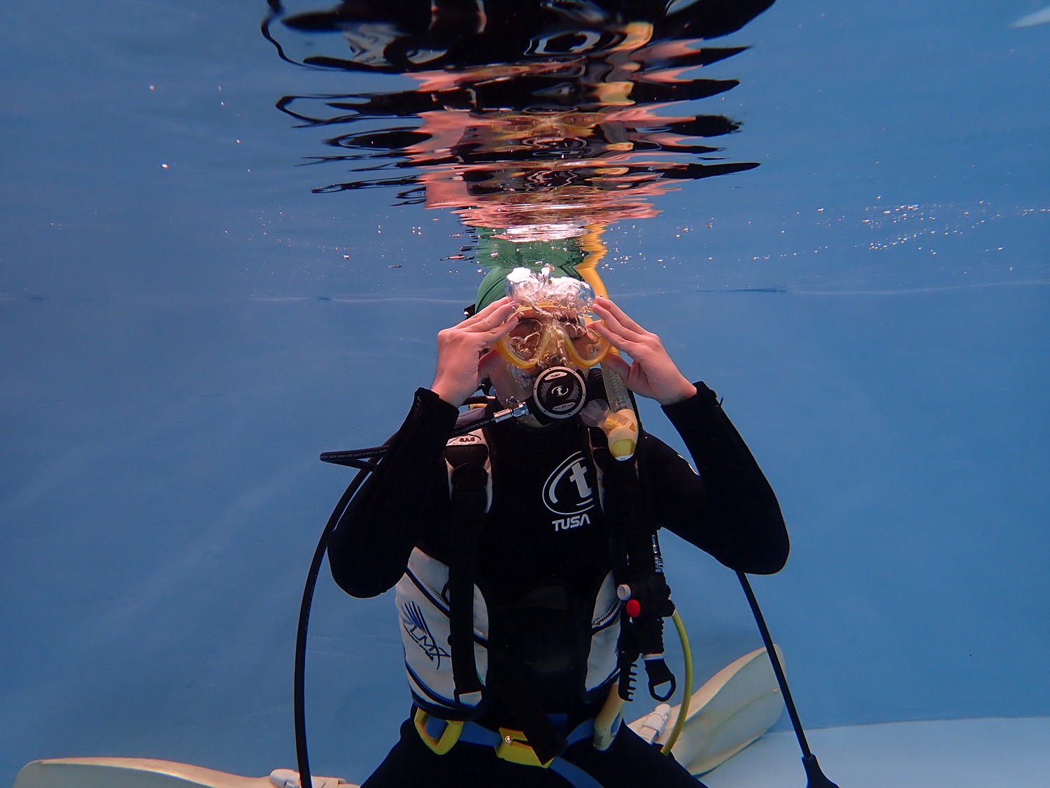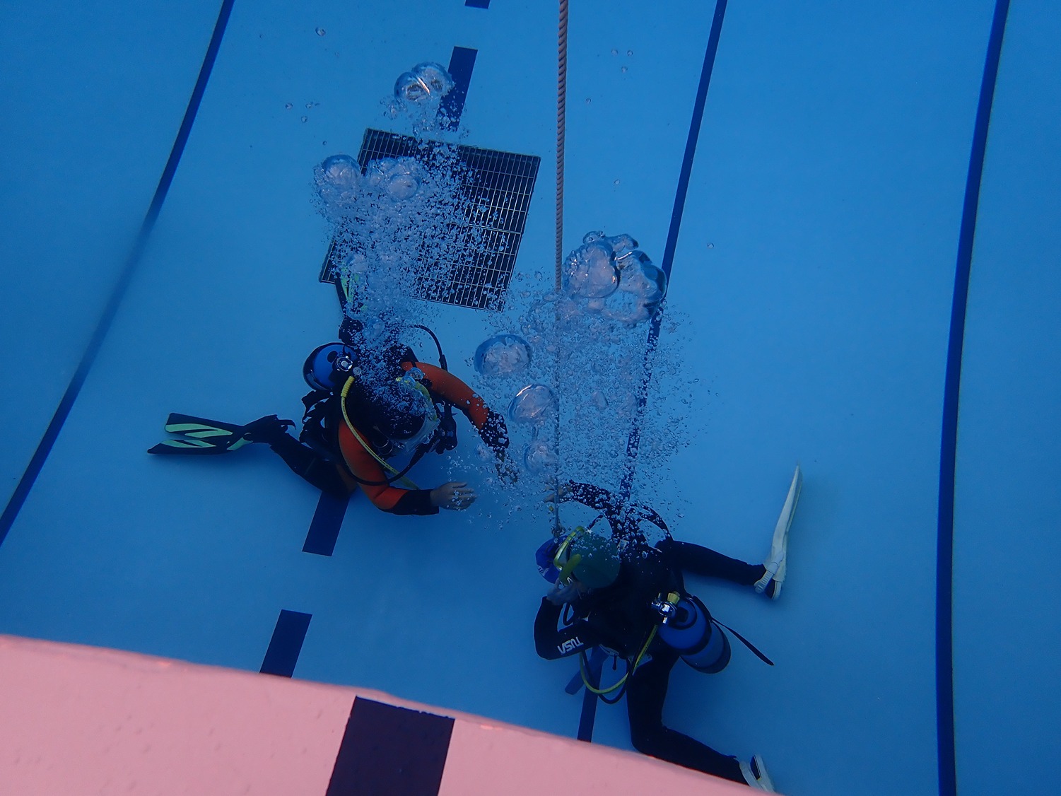 ドライスーツの着方から、中性浮力までびっちり2時間練習です!