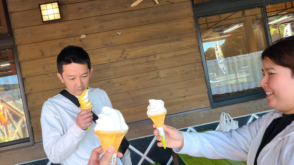 道の駅でマンゴーソフトに、日向夏ソフト。