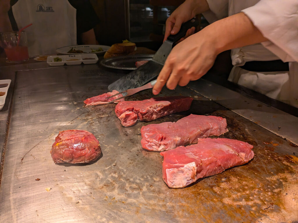 目の前の鉄板で焼いてくれます( *´艸`)